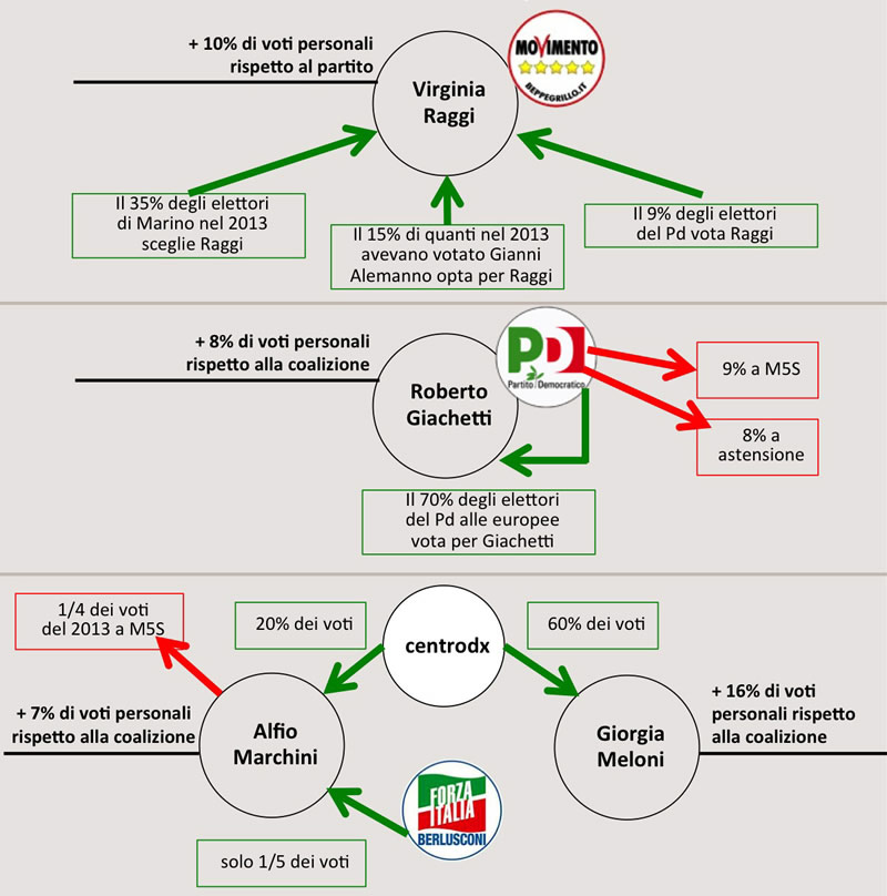 L’exploit personale di Raggi e Meloni, Giachetti e Pd in corsa